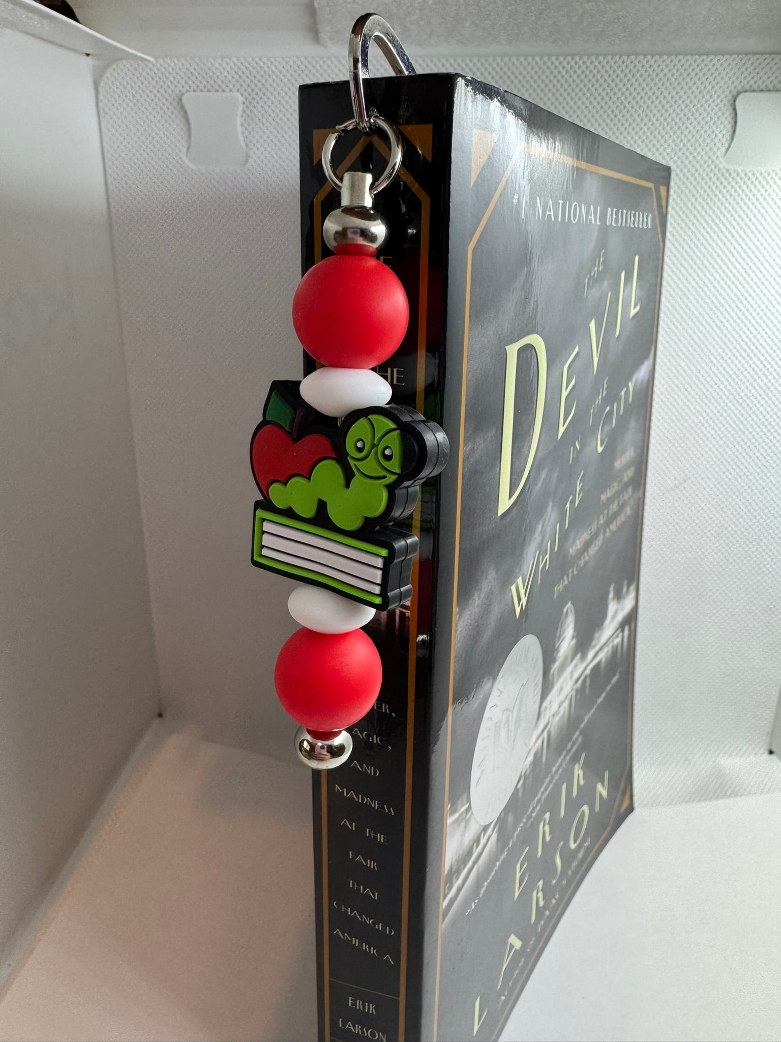 Red Bookworm Bookmark, Reading Accessory, Beaded Metal Bookmark